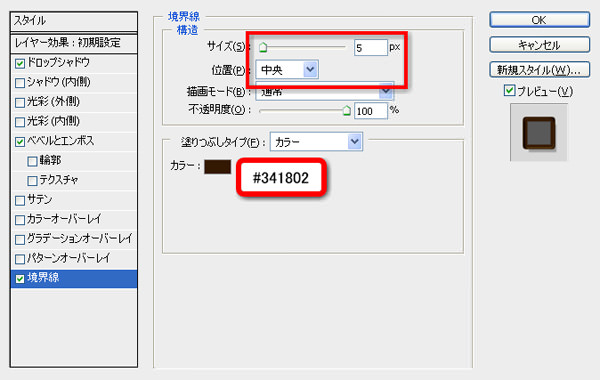 すべてのレイヤースタイルを適用すると以下のようになります。