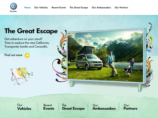 スタイリッシュなデザインの多い自動車会社のウェブサイトにも水彩画デザインが使われています。