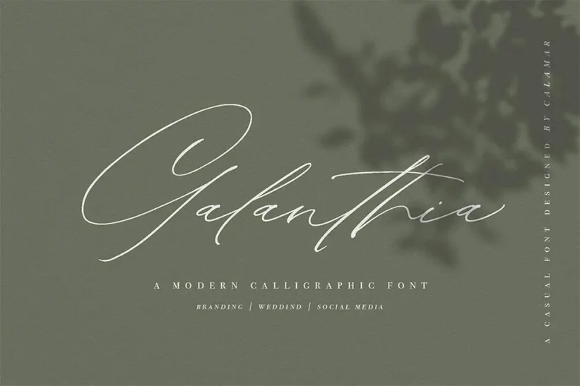 超細字のサインを署名したような走り書きスタイルの筆記体フォントは、エレガントで高級感のある、結婚式向けブランディングにオススメ。