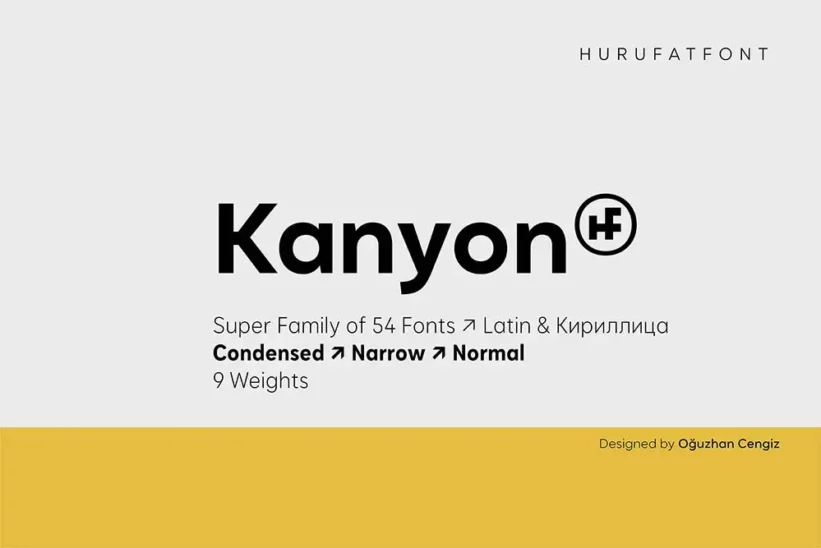 コンパクトでシンプル、かつ機能的な丸みを帯びた見た目で、フォントの幅はNormalからUltra Condesnsedまで5種類。