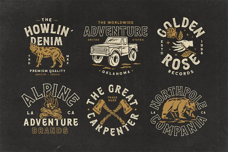 どこか懐かしい、ノスタルジックなヴィンテージ書体で、ザラッとしたスタンプのような風合いを演出できます。