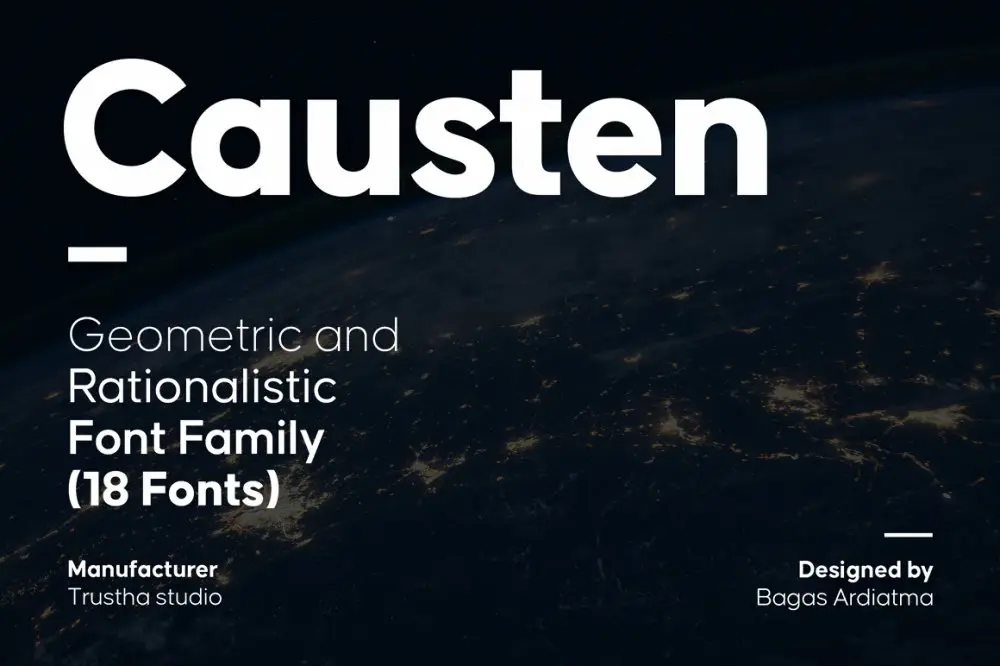 バランスの良い見た目が特長の、幾何学スタイルのサンセリフ書体で、9つのウェイトとそれに合わせたイタリック体を含む、18フォントによる展開です。