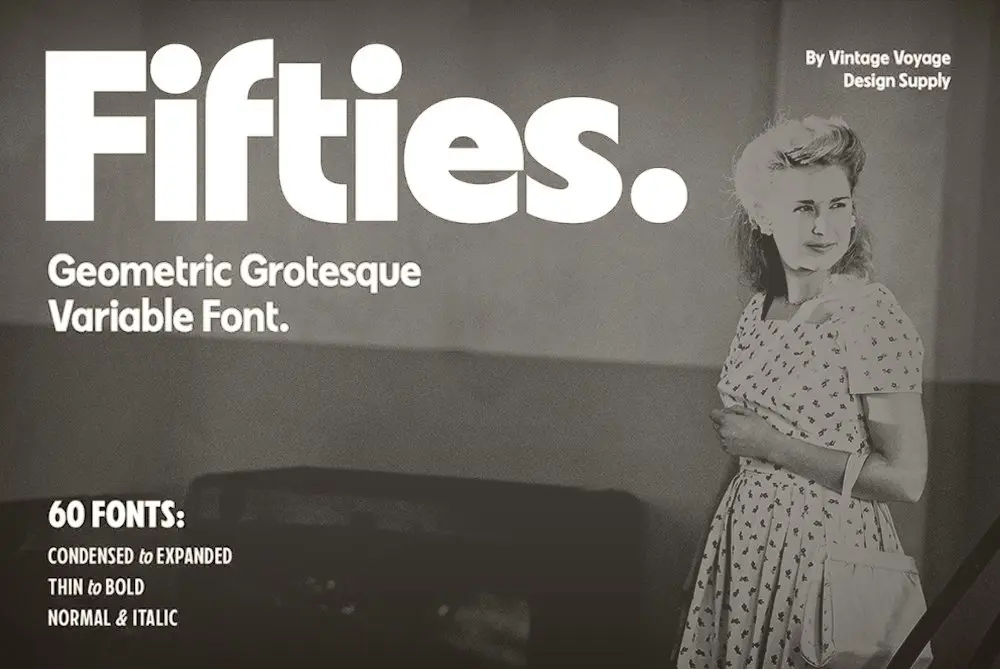 20世紀のモダニズムの美学「バウハウスデザイン」を意識し、現代風によみがえらせたサンセリフ書体には、合わせて60ものフォントが収録されています。
