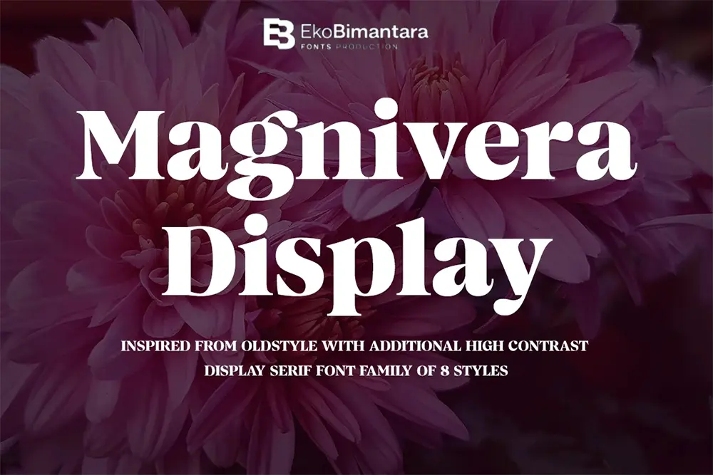 古いヴィンテージ書体に影響を受けたディスプレイ書体で、コントラストのはっきりとした見た目が特長。