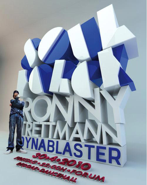 海外ブログDesignM.agでは、3Dタイポグラフィーを利用したクリエイティブなデザインを36枚まとめたエントリー「36 Creative 3D Typograhy Designs」が公開されていたので、いくつか印象的なデザインをピックアップしてまとめてみました。