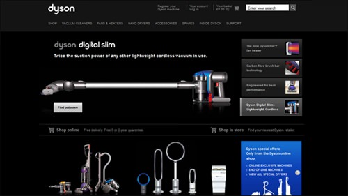 掃除機でおなじみのDysonですが、グリッドレイアウトを使ってスッキリとエレガントな印象を与えてくれます。