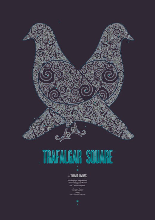 彼のロンドンのそれぞれの地区に対する想いを、タイポグラフィーで解釈、表現しており、グラフィカルで、どこかノスタルジックな印象のデザインとなっています。