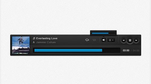 再生、音量ボタンなどが、ぼんやり青白く輝く、シンプルで使い勝手のよい、ビデオプレイヤー用PSD素材。