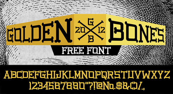 骨を組み合わせたようなイラストが、ユニークなフリーフォント素材。ロゴデザインなどにいかがでしょう。