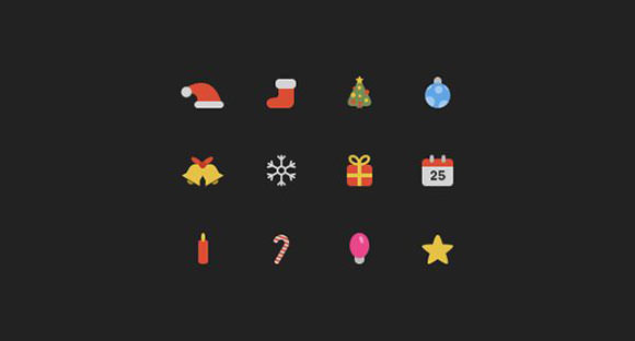 まだまだ早いですが、クリスマスをモチーフにした、フラットデザイン型アイコン。