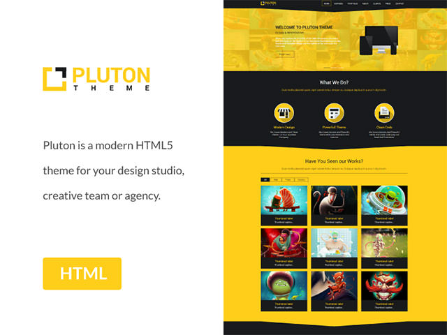 企業サイトなどに最適なモダンでミニマルな印象のダーク系HTMLテンプレート。フルスクリーン・イメージスライダーなどビジュアル面を重視したレイアウトが素敵。