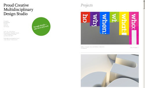 デザイン事務所のウェブサイトで、白の余白スペースを大きく使ったレイアウトが特長です