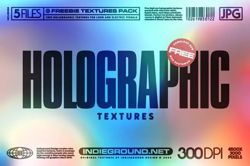 七色に輝くホログラフィックで魅力的なテキストエフェクトで、ガラスのような質感が特徴。