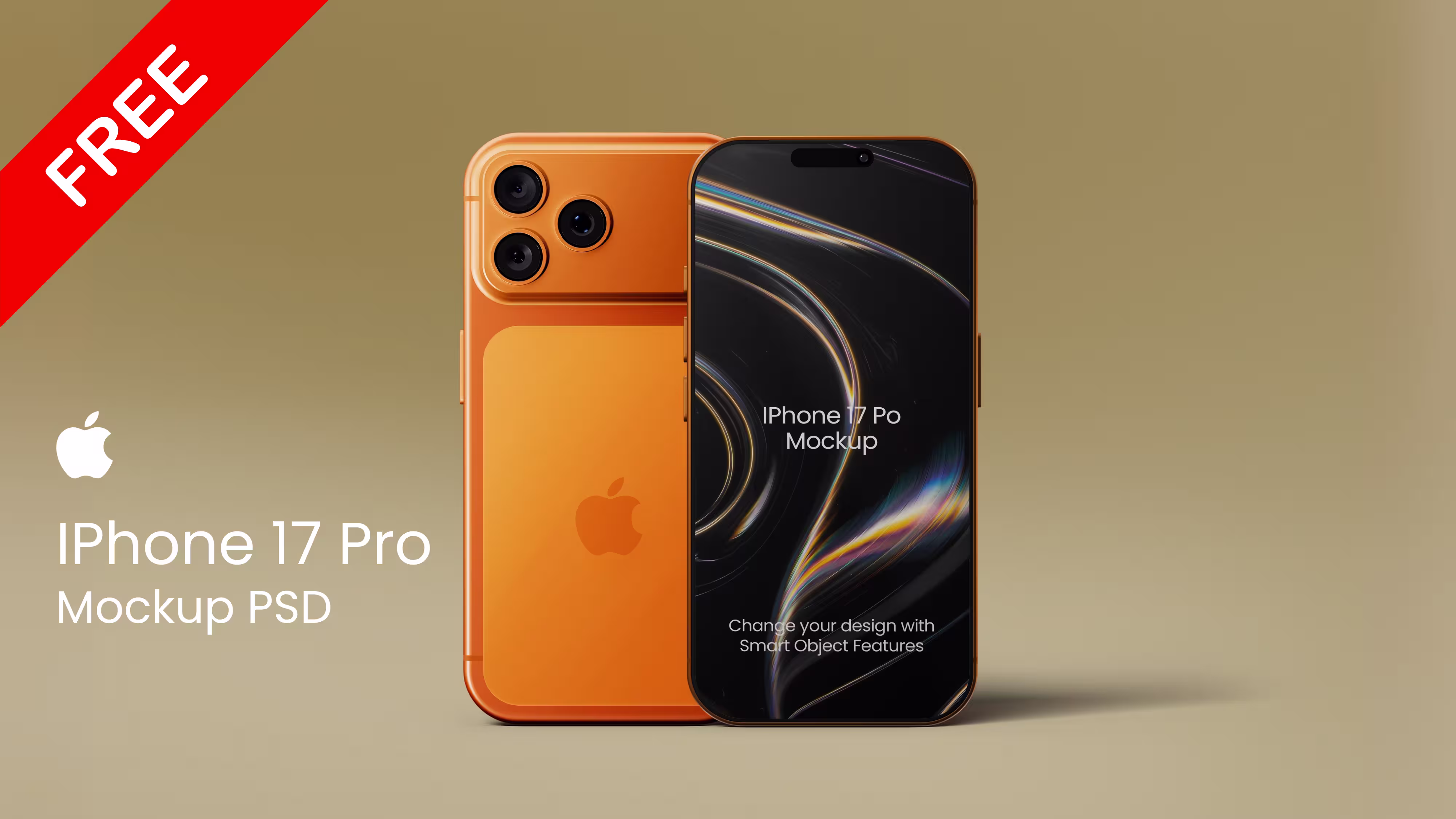 本物そのままにPhotoshopで再現されたiPhone 17 Proのモックアップ素材で、表と裏どちらもカスタマイズ可能。