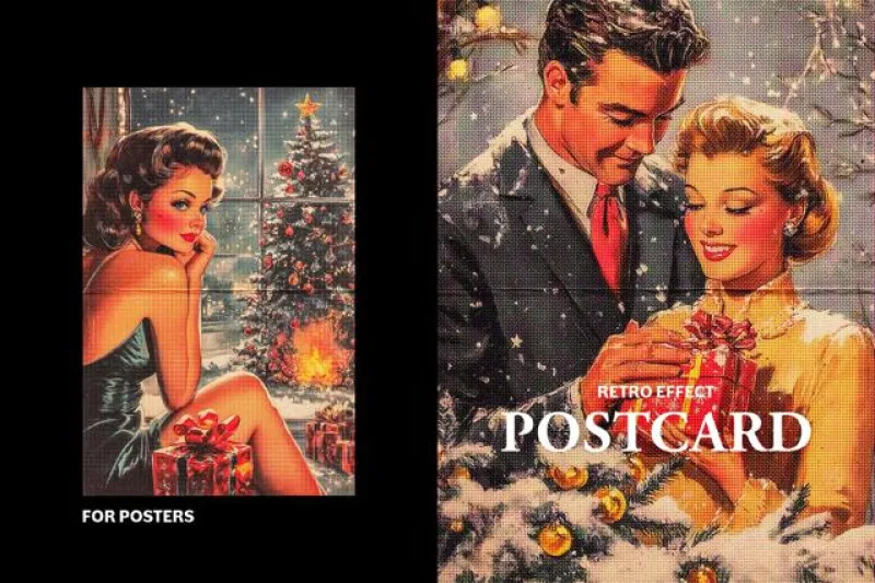 ヴィンテージの印刷カードの温もりを再現したテクスチャエフェクト。細かなハーフトーンやかすれた質感が特徴で、ミッドセンチュリーのイラストのようなレトロな仕上がりを演出。